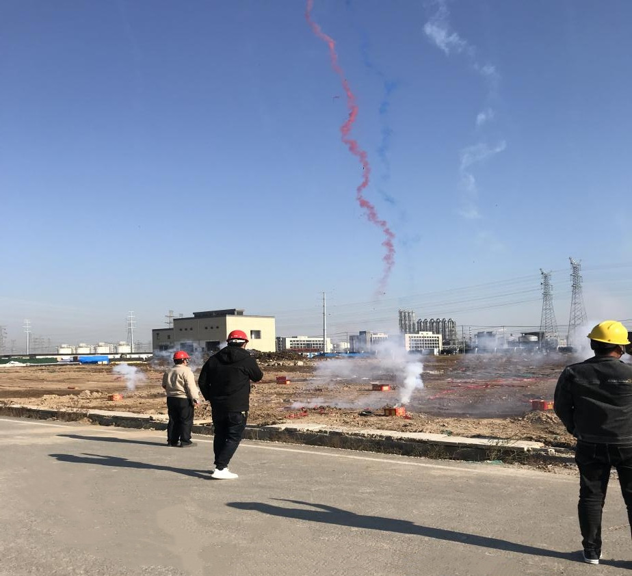 20211112日上午9:28分,江蘇德邦興華化工科技有限公司污水站場地鞭炮齊鳴,由江蘇永超建設有限公司承建的污水站土建工程項目舉行了盛大的開工典禮。德邦興華科技公司常務副總經理李國安、永超公司總經理胡茂懷等領導出席了開工典禮。污水站土建工程開工,標志著我公司三大水處理系統工程包括凈水站、脫鹽水站及污水站已全面進入施工階段,希望在我公司與施工單位的共同努力下,盡早完成三大水處理項目施工并投入運行,為東區整體項目的順利投產提供水系統保障。