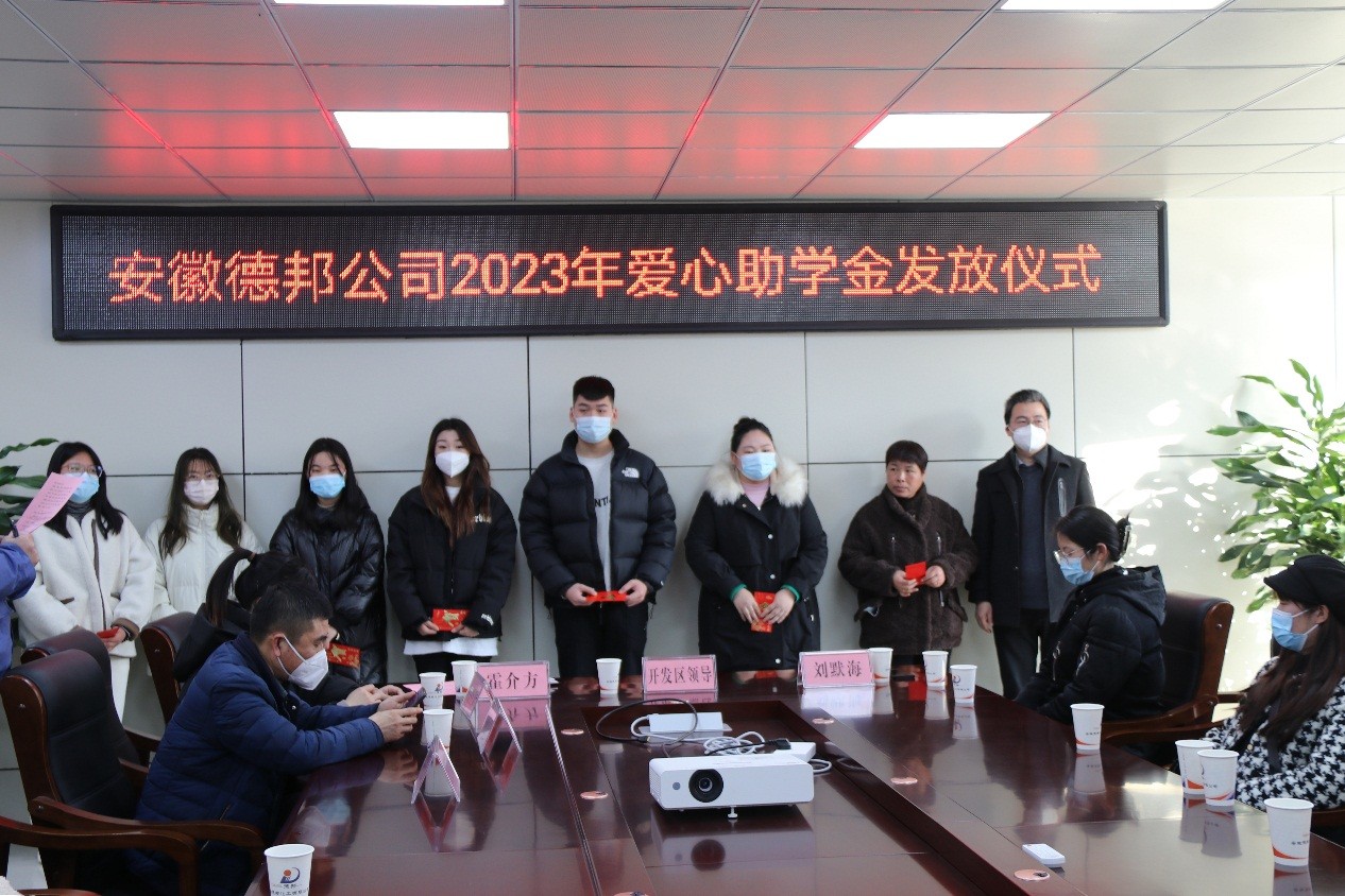 公司總經(jīng)理助理霍介方主持愛心助學金發(fā)放儀式并宣讀受助學生名單,公司黨總支書記劉默海代表公司向出席愛心助學金發(fā)放儀式的各級領(lǐng)導表示感謝,向受助學生和家長表示熱烈的祝賀,并對受疫情影響延期舉辦2022級新生助學金發(fā)放儀式表達歉意。20年來,安徽德邦公司每年堅持對本公司職工子女考上高等院校的,發(fā)放愛心助學金。2018年后,為感謝企業(yè)周邊皖化社區(qū)、田東社區(qū)、朝陽社區(qū)居民多年來對企業(yè)成長和發(fā)展的關(guān)心和支持,將這一活動擴展到周邊三個社區(qū)的居民子女。這一活動,充分體現(xiàn)了德邦公司回饋社會關(guān)心支持,打造和諧鄰里關(guān)系的美好愿望。同時體現(xiàn)了德邦公司全體干部員工對每年考入高等院校的莘莘學子關(guān)心關(guān)愛之情。本次受助學生48名,共發(fā)放愛心助學金79000元。