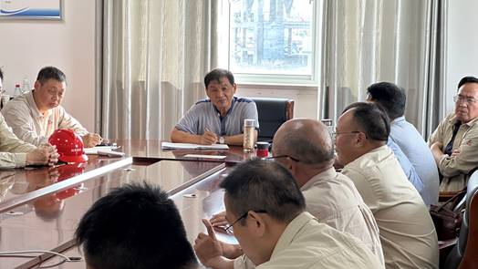 202388日下午,董事長一行至興華科技公司召開項目推進會,回顧上半年東區(qū)項目建設情況,總結梳理目前建設期的難點、痛點,號召全體領導干部敢為人先、攻堅克難、再鼓干勁,為下半年項目建設及開車做好充足的準備。